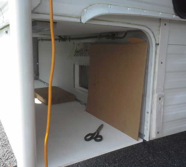 Las puertas de los compartimientos de almacenamiento se pliega contra el lateral del remolque cuando el remolque está en el carro. Las puertas tendrán que haber cortado salidas para cualquier hardware que se encuentra en el lado del remolque. Se debe también cortar outs para algo que estarán en el camino cuando la puerta. Utilice un trozo de cartón para diseñar una plantilla que permitirá la puerta para sentarse a ras contra el borde del remolque, así como Abra sin chocar con nada.