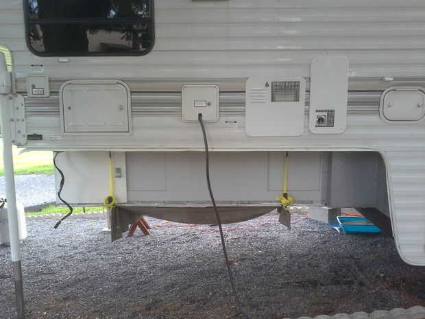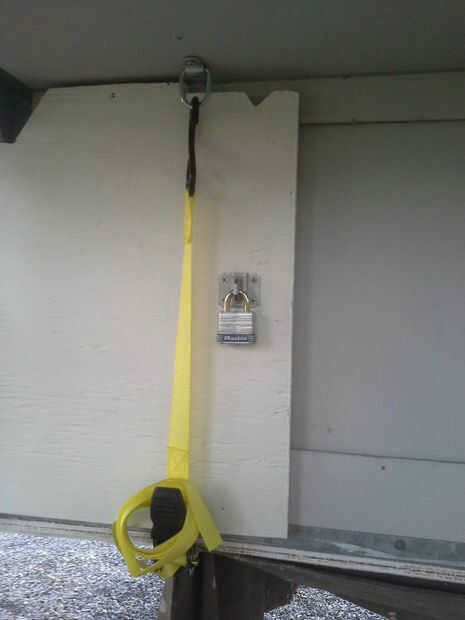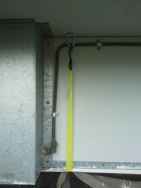 Una manera es necesario para cerrar los compartimientos de almacenamiento de información en preparación para el transporte. Dos correas en lugares estratégicos a lograr esto. Las correas tirón la madera contra el fondo del remolque. Una vez que el remolque está en el carro que ya no se necesitarán las correas para la madera contrachapada. La correa frontal también sostenga las puertas del compartimiento de almacenamiento de información en su lugar.