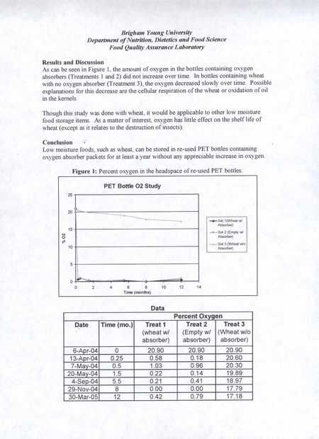 Esta prueba muestra la capacidad de la botellas de PETE, con absorbedores de oxígeno, para mantener un contenido para matar insectos en todas las formas de oxígeno lo suficientemente bajo.