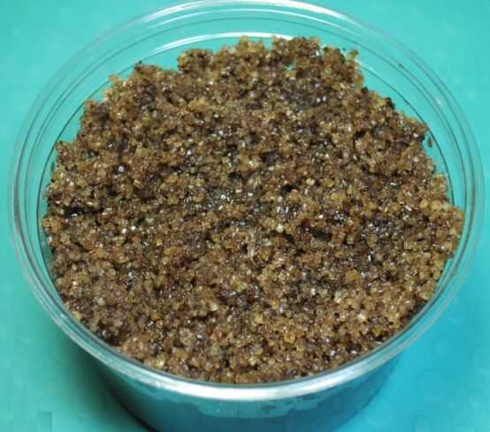 Indicaciones: Masajee suavemente exfoliante sobre la piel. Enjuague con agua tibia. Lo use en la cara o el cuello (la piel es demasiado delicada para un exfoliante fuerte) o en la parte inferior de los pies (no resbalarse en la bañera!).