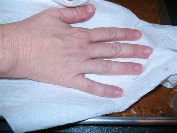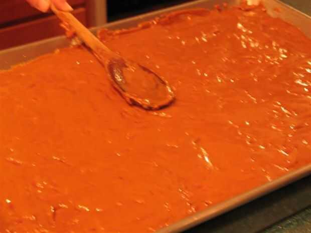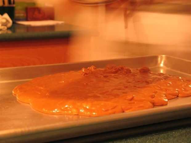 Una vez hecho el Rocha, viértala en el molde para rollo de jalea 12 "x 18". Una vez en la bandeja de la Rocha, extender con la cuchara de madera. Deje que la Rocha enfriar por unos minutos, si poco de mantequilla se separa a la tapa, secar con la toalla de papel.