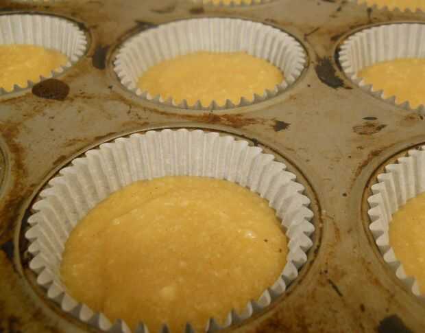 2. Llenar copas de un pan de Magdalena forrado con forros de papel con la mezcla hasta 3/4 completo