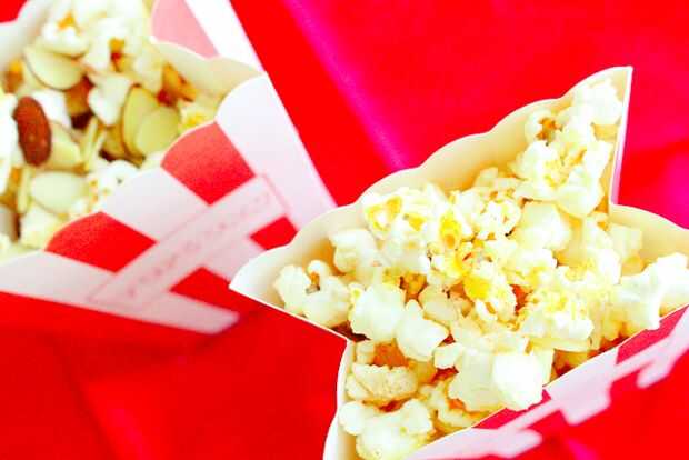 4. agregar almendras a las palomitas de maíz. Disfruta caliente como aperitivo para la noche de película!