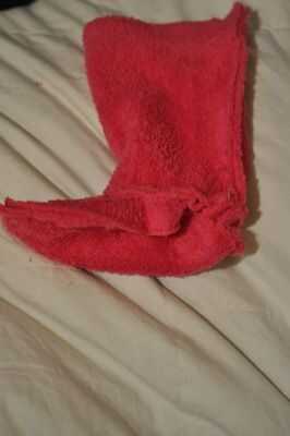 Doble el trapezoide de arranque superior a la mitad y coser la costura vertical con lados del derecho juntos. Prender el extremo cónico del maletero superior a la pieza del zapato y coser. Vuelta de adentro hacia afuera.