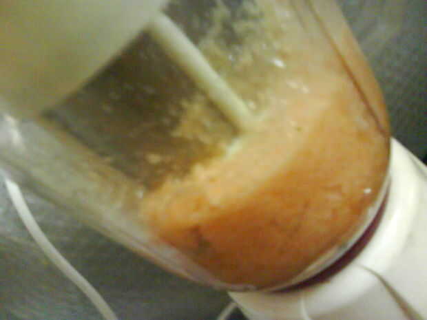 Agrego todo excepto el agua y deshacer juntos. Después obtiene una agradable textura ligera agregue el agua y lo puré de.