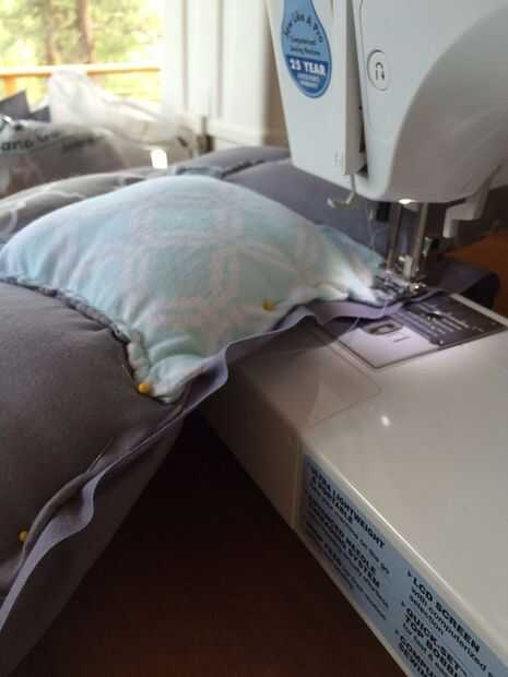 Usted puede coser la parte superior de la almohadilla en la parte trasera en dos lados opuestos de la almohada con una máquina de coser. PIN que al igual que cubrió cada almohada, permitiendo espacio suficiente, pero no demasiado. Tenga mucho cuidado al coser, ir muy lentamente y mantener una estrecha vigilancia sobre ella. Cuando haya terminado de coser los dos lados, voltear la cubierta de la almohadilla adentro hacia fuera para revelar la funda de almohada real para ver cómo cabrá contra su forma de almohada. Entonces tirón se adentro hacia fuera otra vez a coser el segundo al último lado.