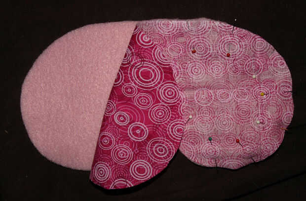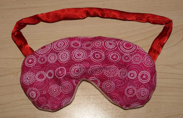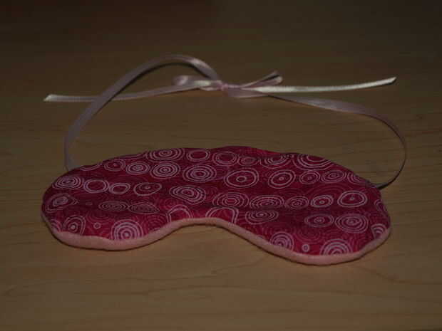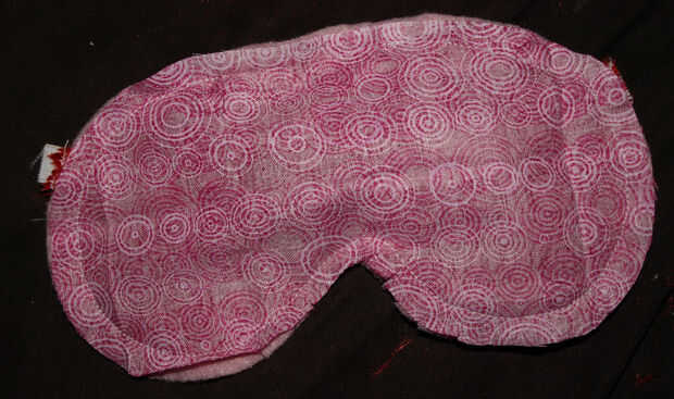 Un final sandwich de ojo correa de la máscara (carcasa, elástico o cinta) entre las dos piezas de tela cerca del borde externo superior de piezas de la máscara, asegúrese de que la correa esté entre las dos piezas de tela y no en el exterior (ver fotos)