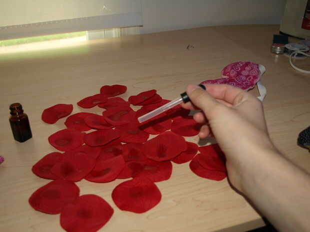 Aceite de lavanda o de lavanda secado se puede Agregar para un calmante ligero aroma (lavanda es ideal para insomnes) (el aceite de lavanda puede añadirse al relleno o falsos pétalos de rosa)