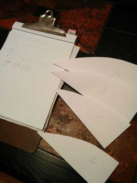 No dude en imprimir mi patrón si tienes una impresora de gran formato que puede manejar, pero no es tan difícil redactar desde cero. Para hacer las partes curvas de las mordazas para el patrón, midió el ancho y la mitad de la altura en un pedazo de papel, había bosquejado la curva en a mano alzada, luego el papel doblado sobre y recortarlo. Entonces usé estas plantillas para trazar formas en lápiz en el reverso de la tela antes de cortar. Para las piezas con bordes rectos, dibujé los directamente en la tela con una regla.