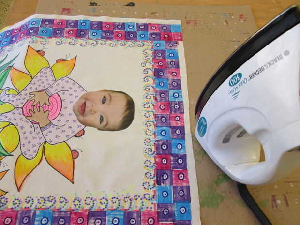 Trabajo Retire el respaldo de cartón y utilizar una plancha caliente para fijar el color sobre la tela.