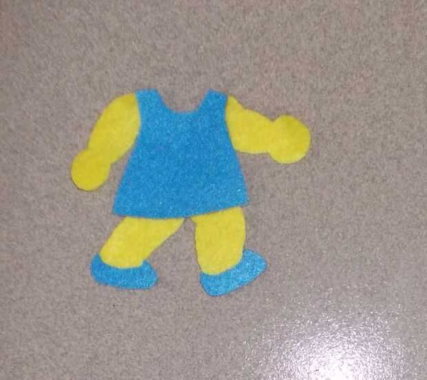 Paso 9: Pegar o coser los brazos en el vestido, los zapatos en las patas. Luego coser o pegar las piernas en el vestido.