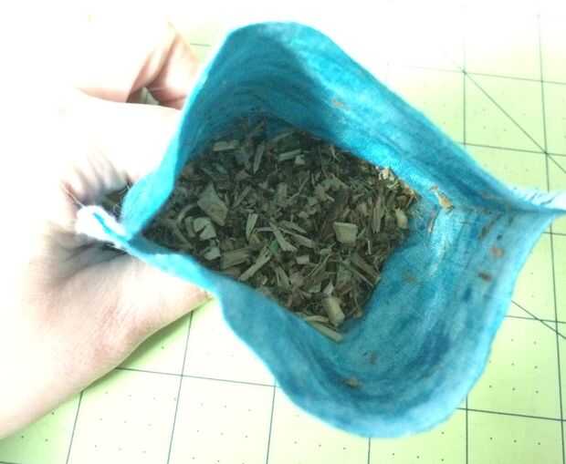 Se llenan el bolsillo 1/2 camino la hierba gatera. No llene demasiado lleno o va a ser difícil coser cerrado.
