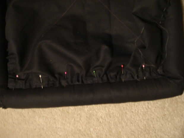 A cada lado del cuadrado más pequeño, hacer una puntada floja de funcionamiento. Se reúnen cada lado por lo que es la longitud de uno de los lados de la plaza mayor. Su plaza se reunieron debe caber en la más grande como se indica antes. Prender el cuadrado pequeño se reunieron en la plaza mayor con los tubos. Coser estos junto con puntadas pequeñas cerca de los tubos. Dejar una abertura sobre la anchura de su mano en uno de los lados, así que usted puede poner la almohada relleno en.
