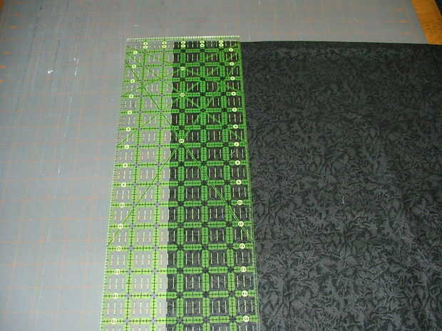 Medida a través del centro de la cara de la enredadera (debe ser 16 1/2", pero mina fue 16 3/8") y cortar 2 tiras de tela negra esta largo por 3 1/2" de ancho. Coser a la parte superior e inferior de la cara y presione la costura hacia la frontera. Ahora medir a través de la "altura" de la cara (debe ser 22 1/2") incluyendo los bordes y cortar 2 tiras de tela negra esto largo por 3 1/2" de ancho. Coser a los lados de la cara y presiona otra vez la costura hacia la frontera. Si sus fronteras son más largas que la medida central a través de su centro se terminan siendo ondulado. Esto no sería un gran problema en un proyecto pequeño como este, pero en un tejido más grande o un colgante de pared sería muy notorio.