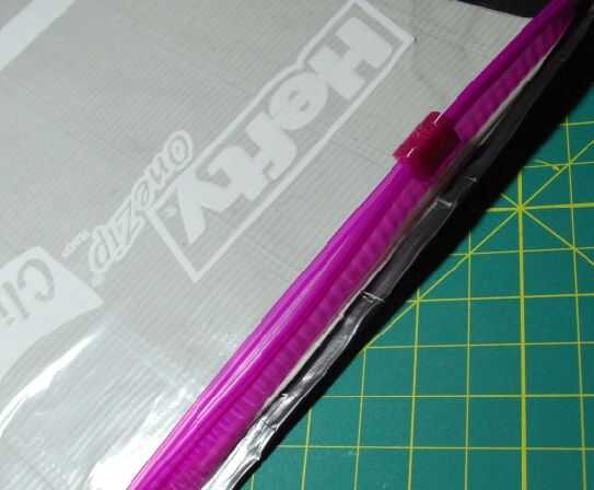 • A lo largo de la parte superior, doble cinta en sí mismo, sin interferir con la cremallera
