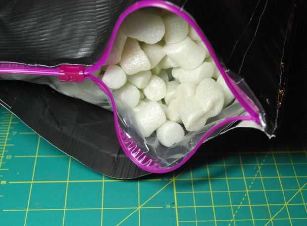 • Abra la bolsa y esas cosas con cacahuetes del embalaje, u otro material de embalaje (teniendo en cuenta que cierta cantidad de humedad podría colar en)