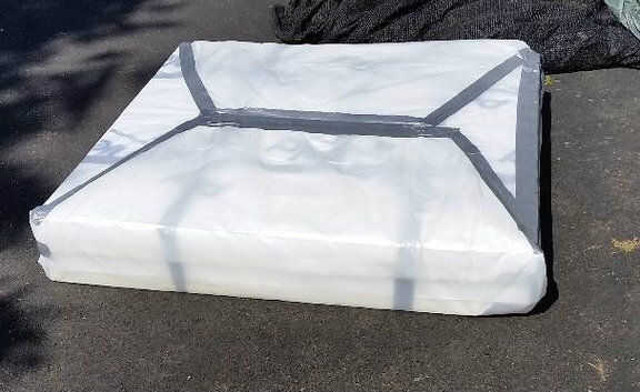 Poner el plástico sobre la parte superior del bloque y envolver como si fuera un conducto de gran paquete encintado las costuras de manera que todas sus conexiones de cinta del conducto en la parte superior del bloque para que la cinta no estará sentado en el agua.