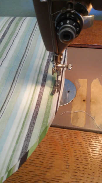 2. coser juntos los pedazos -tiempo para ir a la máquina de coser y empezar a coser sus dos pedazos juntos. Desea dar a ti mismo sobre el margen de costura de 1/4" con su tela. Esto significa que la puntada sea aproximadamente 1/4" del extremo de la tela.