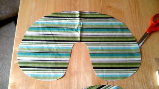 Ahora que tienes las dos piezas en forma de U puede empezar a coserles juntos