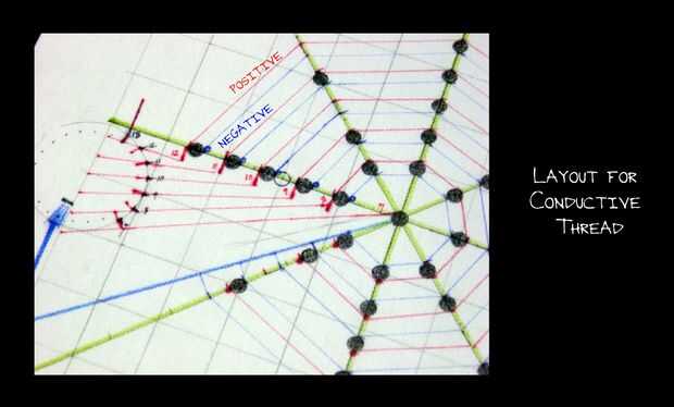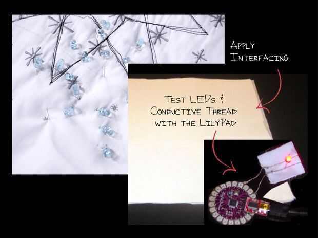 Conexiones de prueba de LilyPad con hilo conductor y LEDs