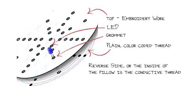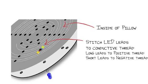 Hacer tus propios tejidos conductores, hilo, pegamento y cinta y usarlos para hacer potenciómetros, resistencias, interruptores, pantallas LED y circuitos.Utilizando pegamento conductor y el hilo conductor puede hacer circuitos y pantallas LED sobre