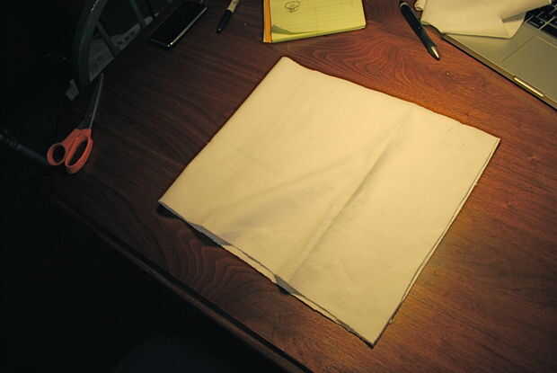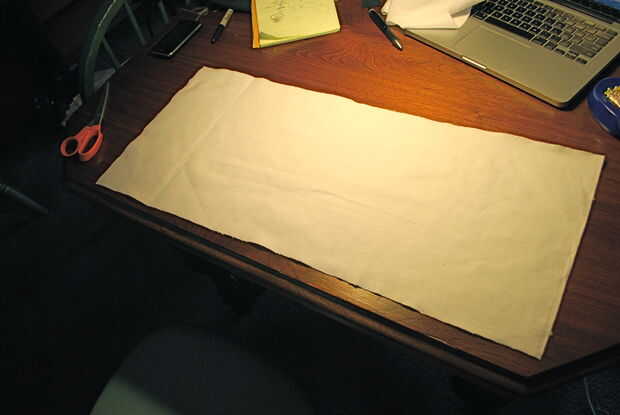 Cortar un trozo de tela blanca 12" alto y tan largo como lo que calcula por encima de. Doble hamburguesa estilo, pin y coser.