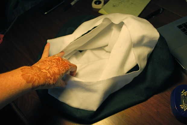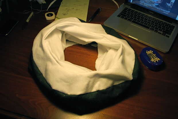 Gire el todo derecho-lado-hacia fuera, levantar el tubo blanco interno a través del centro por lo que todo hace una forma de donut grande.