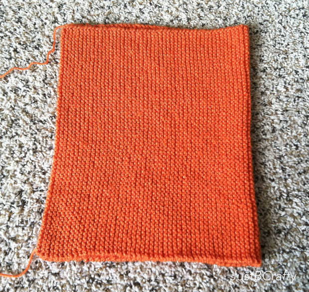 Pieza de doblez por la mitad, con reparto de lado y atar de lado tocando.  No importa qué lado es el lado derecho o incorrecto porque Liga puntada tiene el mismo aspecto en la parte delantera y trasera, pero si tienes un lado que se ve mejor lo tienen en el interior con la parte fea hacia afuera.