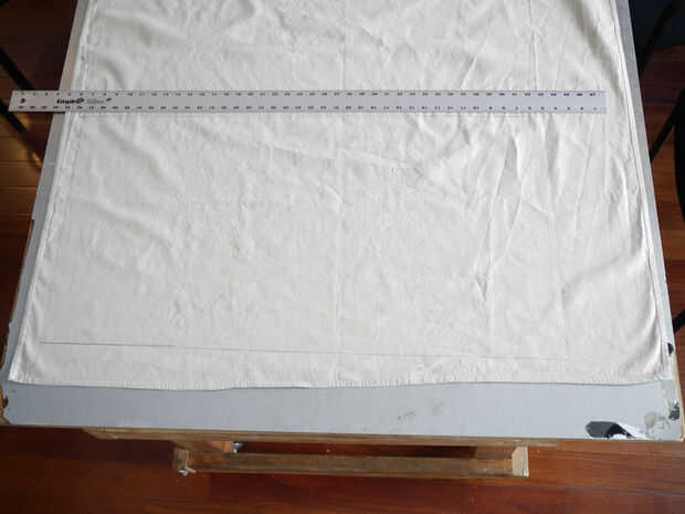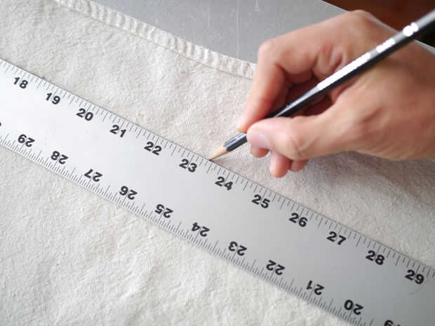 Con una lona limpia y plana, marcar un rectángulo de 19 "x 37" con un criterio y un lápiz y cortar hacia fuera.