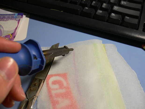 En primer lugar, colocar una capa de papel (papel encerado) de hornear sobre la mesa. A continuación, colocar la bolsa de ziplock y luego coloque otra hoja de papel además de cocción. Ahora, encienda el soldador a calentar durante algunos minutos. No dejes que te calientes demasiado, ya que quema a través del papel y derretir a través de la plástica. Si el papel de la hornada dar vuelta a marrón, el soldador está demasiado caliente.