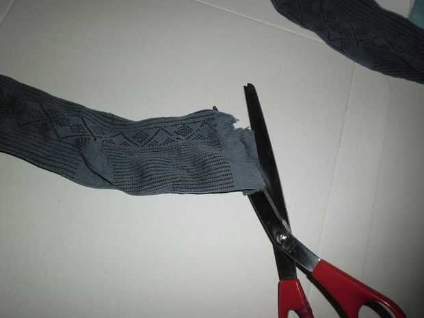 Si los calcetines son los largos, corte por encima de los talones, si no solamente final del dedo. Hará más izquierdo más grande final cojín.