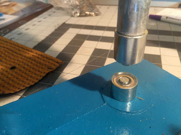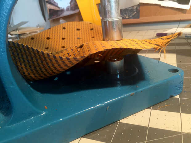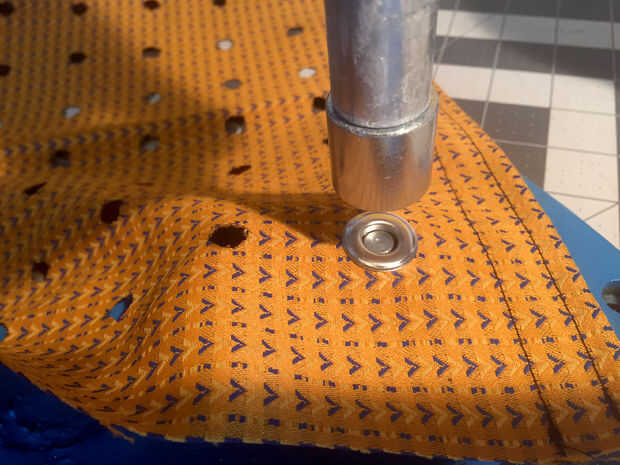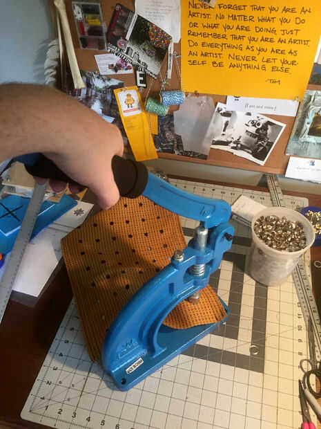 Ahora viene la verdadera diversión: ojales para siempre! Poner en anillos es una de esas experiencias de gratificación instantánea. El metal mágico poco convierte un agujero raggedy de la tela en un agujero brillante y nítido de la perfección.
