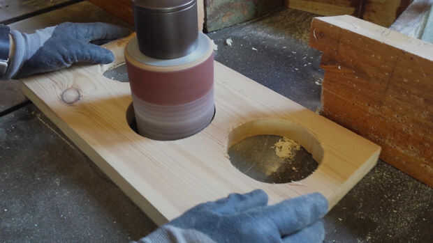 Como un paso opcional podemos limpiar los agujeros, usando una lijadora de husillo.