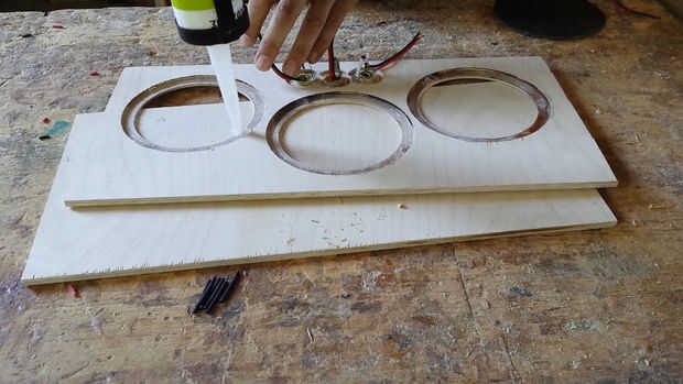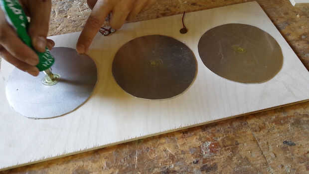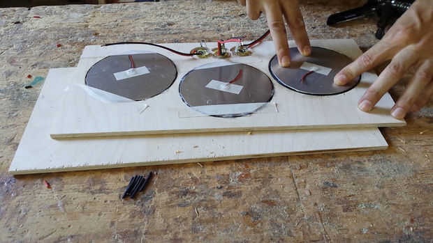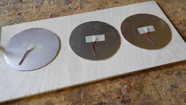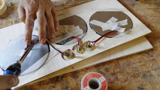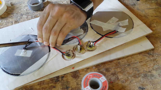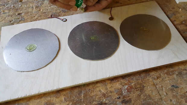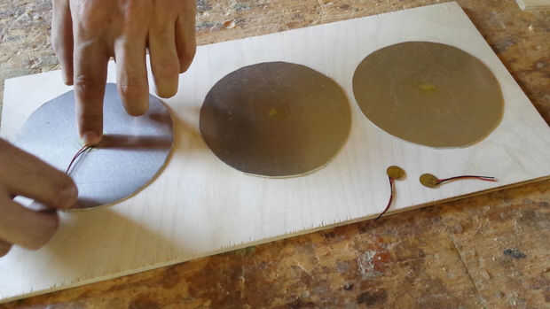 Opcionalmente puede utilizar alguna cinta adhesiva o cualquier tipo de cinta para asegurar los cables piezoeléctricos en los discos una vez que están muy delgadas y frágiles.