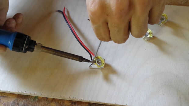 Finalmente soldar los cables de las piezas a los cables provenientes de las tomas.
