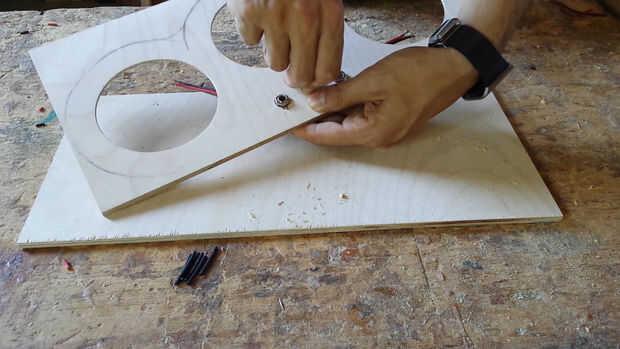 Conecte las tomas según este enlace. Conecte las tomas en el marco, utilice algunos silicona para pegar las almohadillas de goma en el marco como se muestra y pegar las piezas en el centro de cada disco de metal.