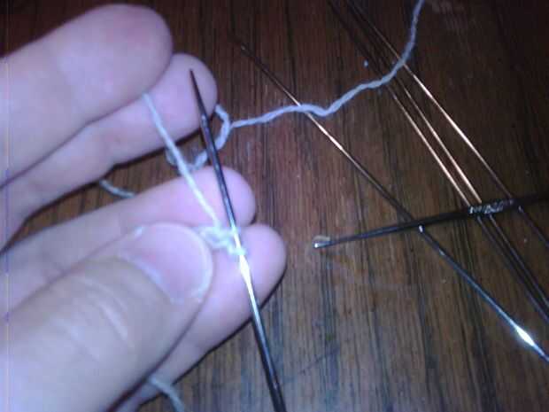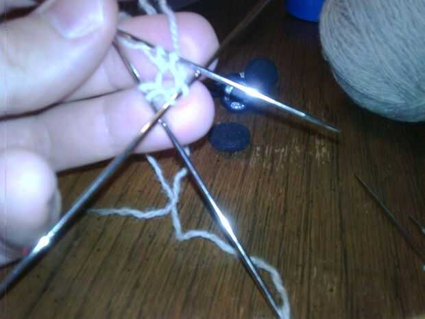 Repita con las agujas de segunda y terceros. Tienes seis puntos de sutura. Todo es muy flojo en este punto. No te preocupes, apretará para arriba más adelante. Tenga cuidado de no dejar caer una aguja de tus puntadas, aunque!