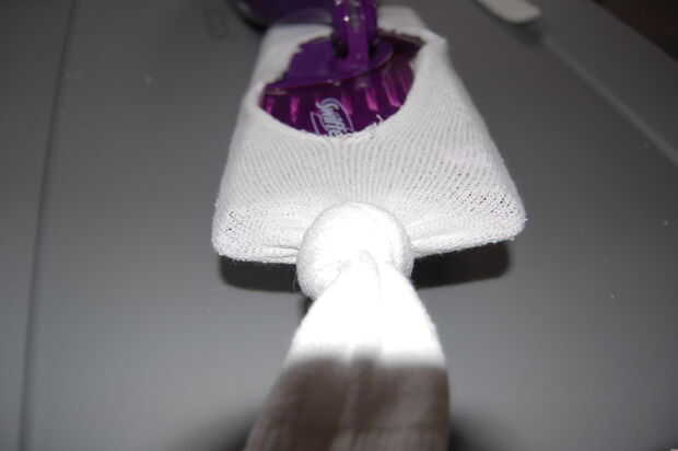 Para cerrar el otro extremo, un nudo en el calcetín y cortar el resto. Tratar de mantener el nudo apretado un poco - el calcetín permanece sobre todo a través de la elasticidad.