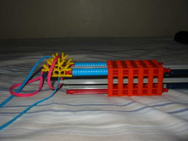 Sólo un simple semi-auto diseño de Oblivitus de sus conceptos de K'nex. Tengo que decir, creo que esto no es tan fácil de usar, potente y útil que sus otros pseudo semi-automática de diseño (apila barriles en lugar de lado a lado). Sus contras compen