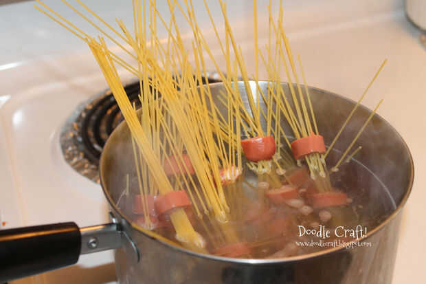 por lo que puede llenar tu perro caliente con salsa de tomate. La herramienta es una longitud de 3/8" alimentación que tuve en la tienda. Sólo lo empujó a través del perro caliente. Cocinero de cualquier forma que desea, luego dispara alguna salsa de