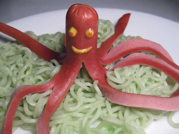 Diversión, Niños, Cena, Salsa de tomate, Almuerzo, Fideos, Comer, Pulpo, Mostaza, Algas marinas