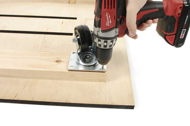Una vez que todos los agujeros son perforados, Monte de la ruedecilla en su lugar utilizando tornillos para madera.