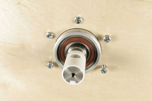 Descargar e imprimir el espaciador de plástico adjuntado. Esto está diseñado para llenar la brecha entre el diámetro interno de la brida de montaje de la rueda y el diámetro del eje. Esto debe proporcionar un agradable presione ajustado entre las dos partes y mantener la rueda centrada.