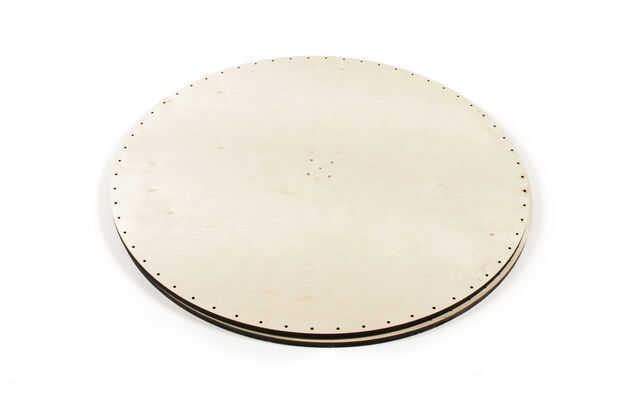 Utilizar un taladro con una pala de 3/4" bit para ampliar el centro de la rueda los agujeros a una profundidad de sobre un 1/4" de montaje. Deben taladrarse profundidad suficiente para avellanar los pernos de carruaje.
