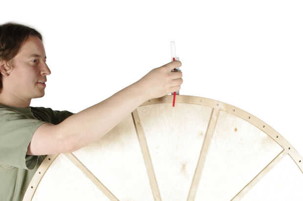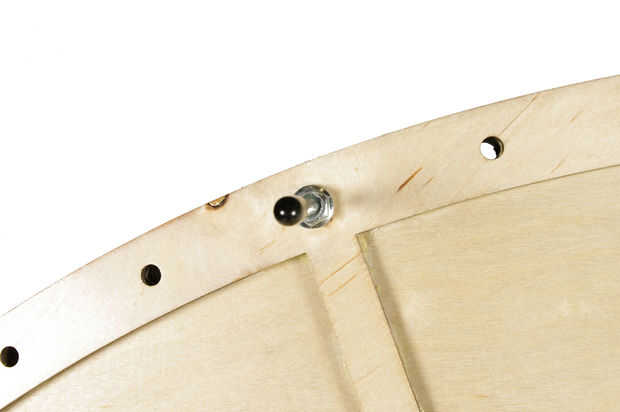 Inserte las clavijas en los agujeros de montaje alrededor del diámetro de la rueda y fijarlos en su lugar utilizando las tuercas de fijación.