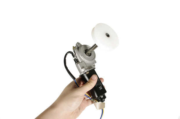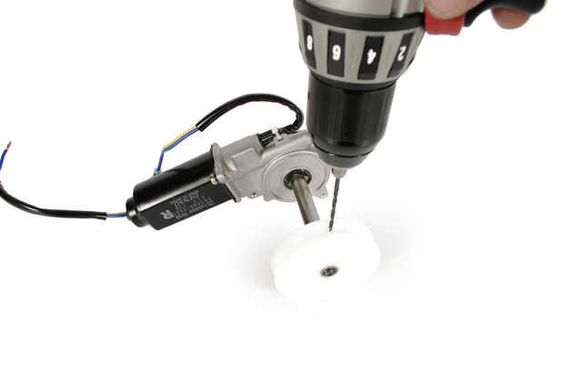 Presione la polea de nylon en el extremo del eje del motor.