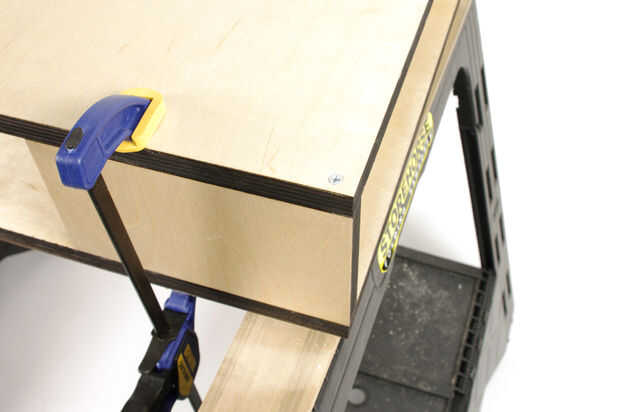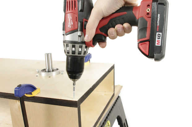 Perforar dos agujeros en cada una de las esquinas Fije los soportes de esquina ángulo recto en el frente del pedestal y piezas.
