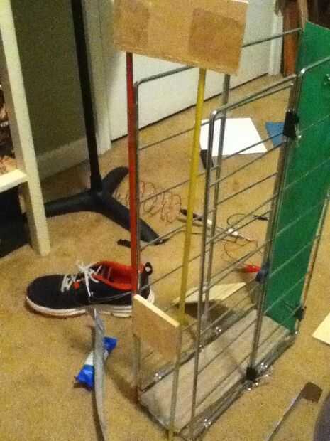 Montar la otra pieza de madera contrachapada en un tablero sobre ancho de 3.5-5 pulgadas y 13 pulgadas de alto en el lado de él. Como en la imagen