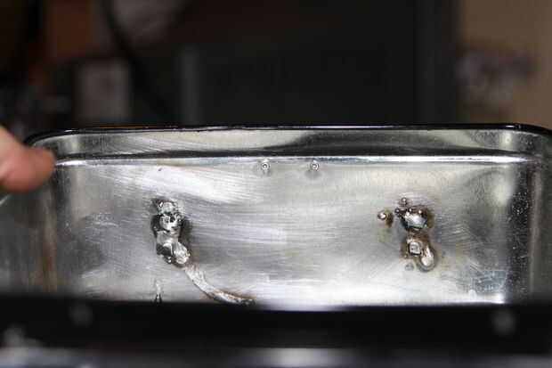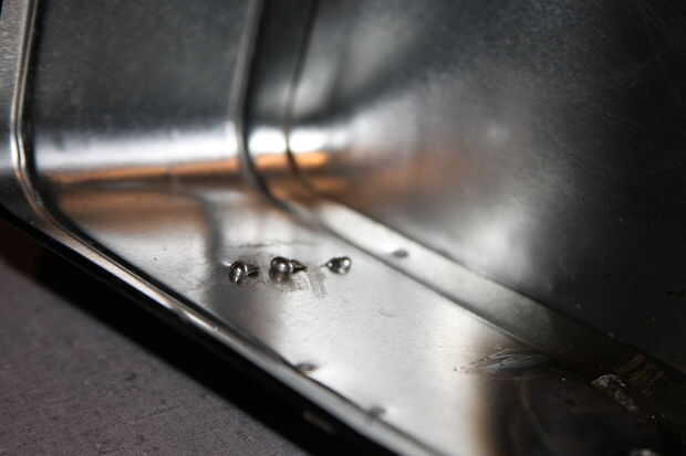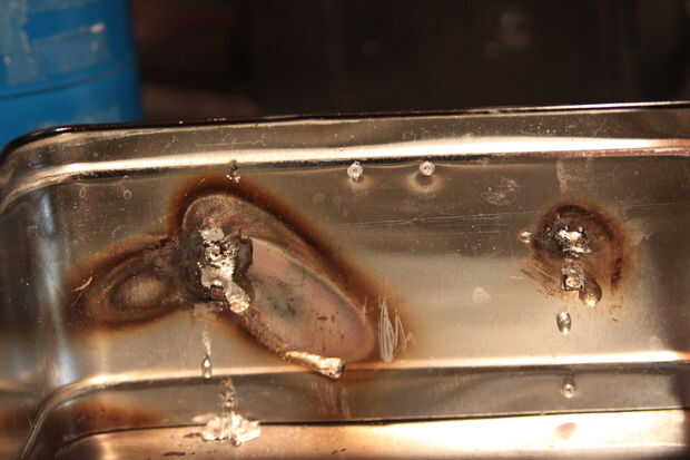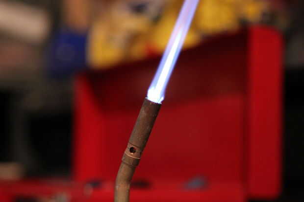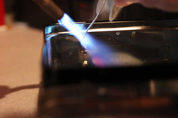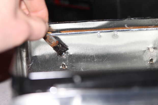 Decidí este empalme de la soldadura. Mi soldador fue enterrado en algún lugar en mi taller, pero que tenía una antorcha de gas mapa y flujo de plomería y plomo de la soldadura útil, así que fui para. Sabía que sería arriesgado con respecto a la quema de la pintura, pero me fui para él. Quemar la pintura. Si desea utilizar un soplete para hacer lo mismo, girar a la llama abajo bajo. También, asegúrese de tener su caja de almuerzo orientada para que la soldadura no se ejecuta, pero piscinas en la zona que se desea.