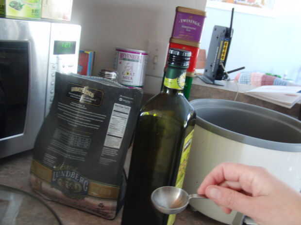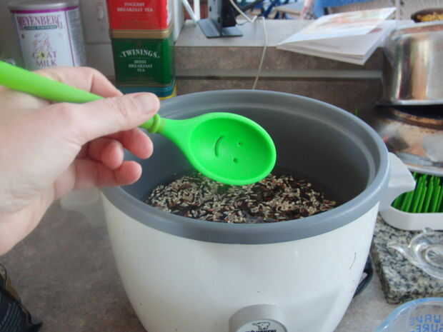 Una vez cargué la arrocera, mezclan el contenido bien, y luego presiona "cook" y esperó hasta que el arroz se terminó.